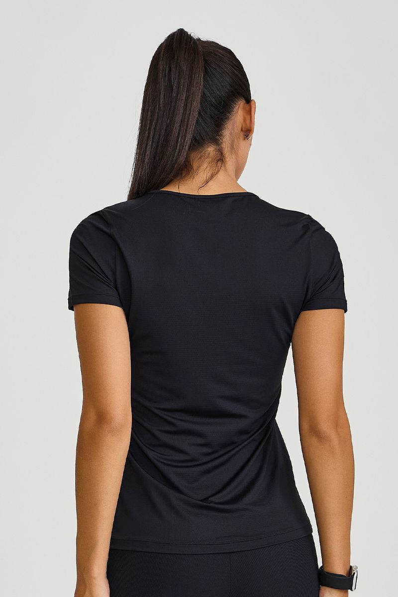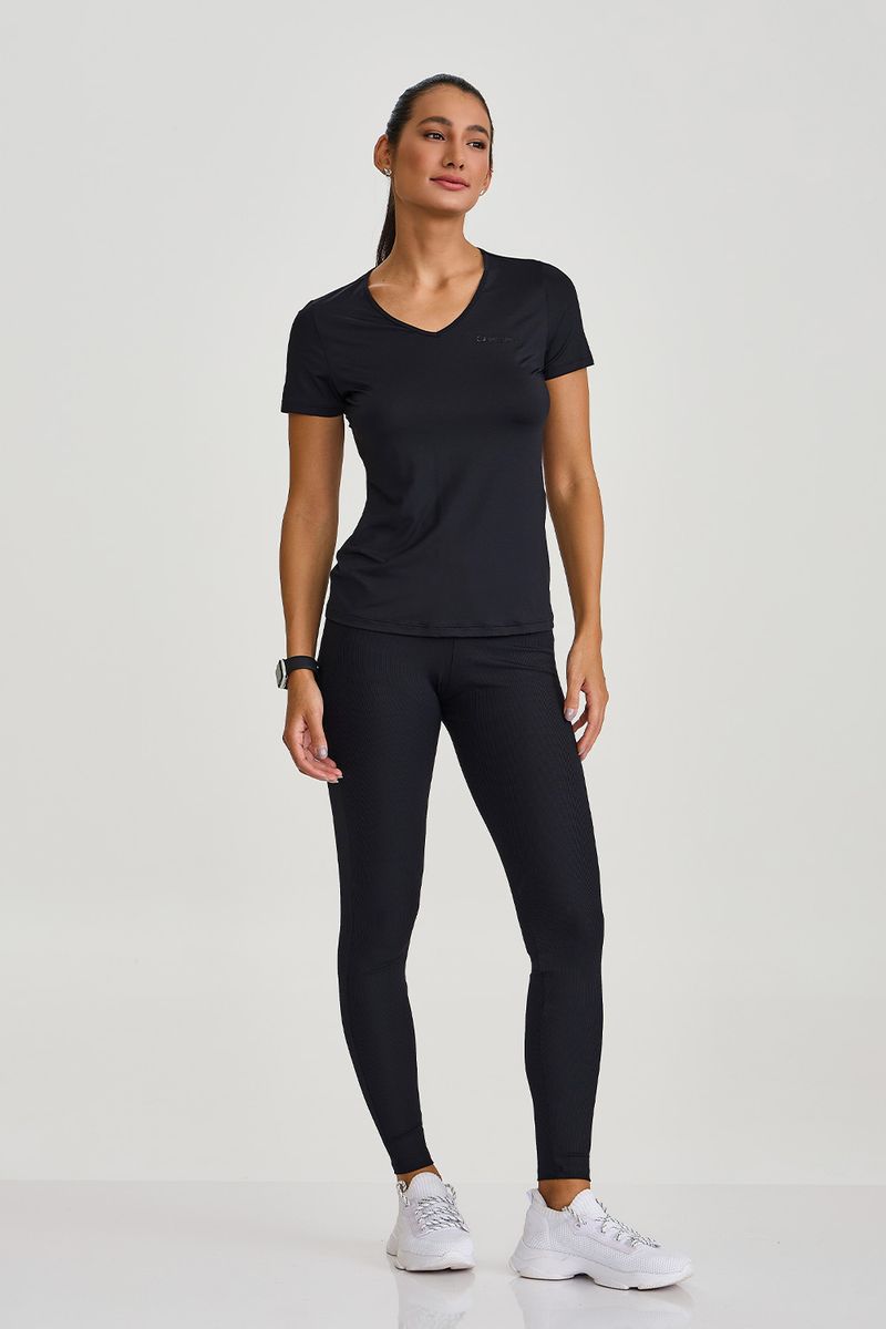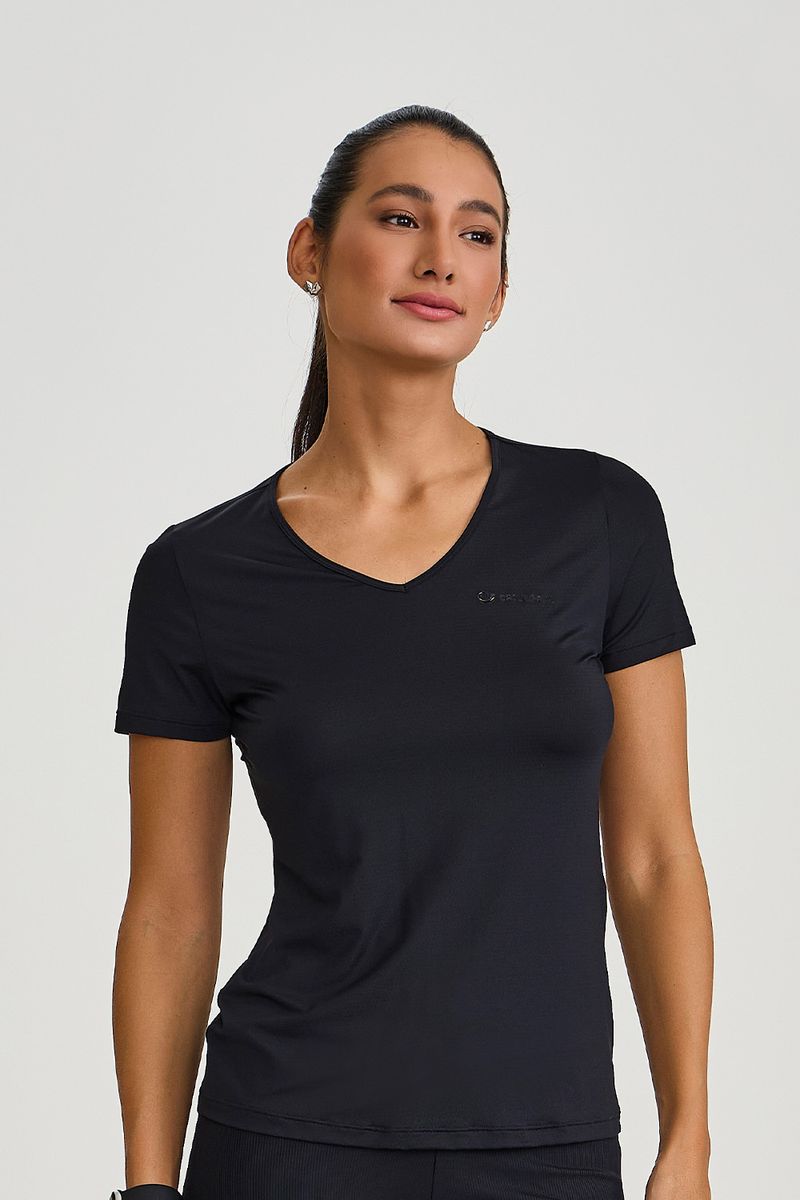 BLUSA ALONGADA NT PRETA — Blusa feminina em tecido tecnológico respirável com proteção UVA/UVB, desenvolvida para quem exige performance com acabamento refinado. O decote em V delicado e a modelagem slim alongada proporcionam caimento elegante e liberdade de movimento, enquanto o logo tonal no peito reforça o design minimalista. Ideal para corrida, musculação e uso cotidiano, a peça oferece toque leve, respirabilidade e secagem rápida, sendo uma opção versátil e funcional para treinos e rotinas urbanas. Cor: preto.