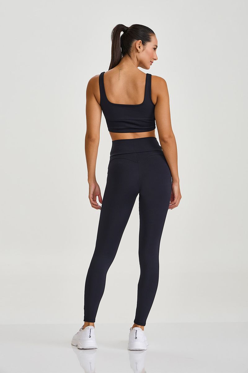 Legging Nakay Empina Bumbum — preta, confeccionada em tecido técnico respirável com elastano para maior recuperação e conforto. O cós alto transpassado em canelado cria um recorte em V que afina a cintura e valoriza o quadril, oferecendo o efeito empina bumbum desejado. Modelagem skinny de comprimento longo garante ajuste anatômico e mobilidade para treinos, pilates e uso diário; acabamento minimalista e cor preta tornam a peça versátil e sofisticada.