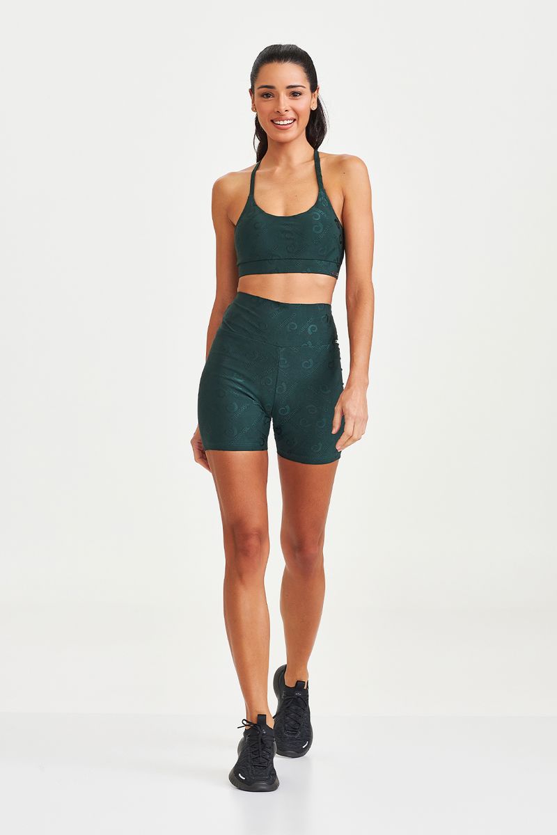 SHORT EXCLUSIVO CAJUBRASIL VERDE BONSAI — Short texturizado em tecido exclusivo Ketten Sport com brilho sofisticado e acabamento jacquard tonal. Cós alto que modela e disfarça imperfeições, com forro interno para mais segurança e conforto durante a prática esportiva. O tecido proporciona toque firme e durabilidade, ideal para usos frequentes; a estampa monograma discreta adiciona identidade premium ao look. Perfeito como peça de treino e para composições athleisure, este short une tecnologia têxtil e acabamento refinado na cor Verde Bonsai.