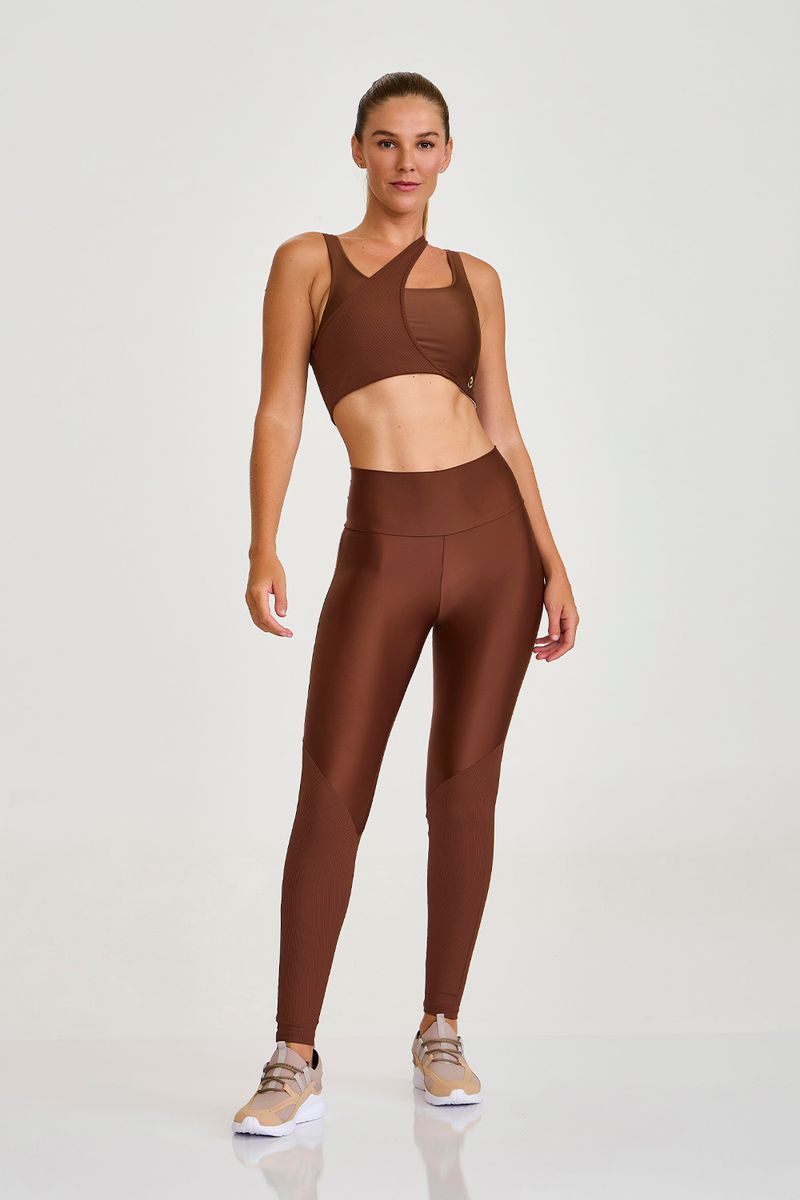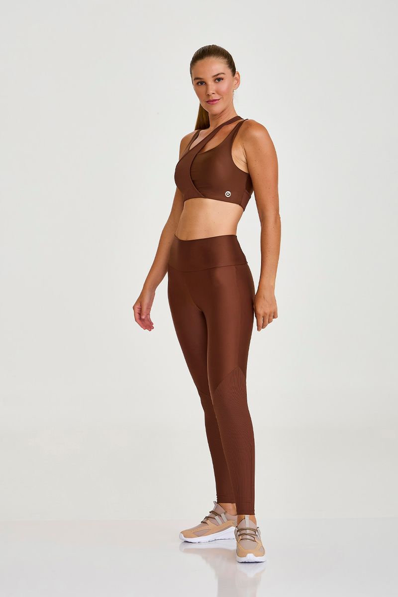 Elegância técnica para seus treinos: top cropped com sobreposição canelada e alças que se cruzam no ombro, confeccionado em tecido tecnológico perolizado com compressão e proteção UV+. O bojo fixo embutido e o cós largo garantem sustentação e ajuste firme, enquanto o acabamento acetinado eleva o visual para uso athleisure. Composição: poliamida e elastano. Ideal para corridas, musculação e práticas em estúdio, combina performance, conforto e um acabamento sofisticado.
