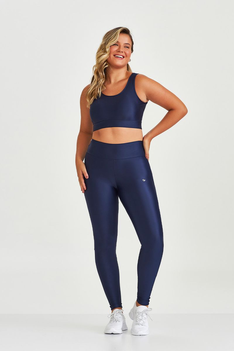 Top Atletika Ketten Sport em tecido com compressão na cor Azul Eclipse, com bojo fixo integrado e painel em tule nas costas. Apresenta acabamento com brilho sofisticado e barra elástica que assegura ajuste firme; ideal para treinos de média a alta intensidade. Sensação firme ao toque, ventilação localizada nas costas e design pensado para performance com estética premium.