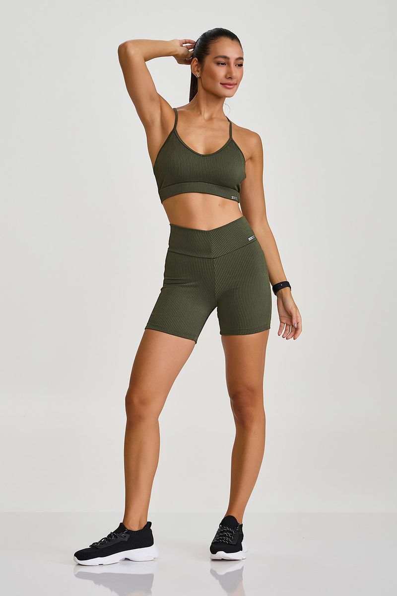 Top canelado verde croco com alças cruzadas e bojo removível: design e performance em uma peça só. Confeccionado em tecido canelado com brilho discreto e tecnologia de proteção solar, proporciona toque macio, elasticidade e suporte leve pela faixa inferior. O decote em V e as alças finas cruzadas nas costas criam uma silhueta elegante e funcional, ideal para treinos, aulas de estúdio ou para compor looks urbanos. Versátil, respirável e com caimento ajustado, é a escolha perfeita para quem busca conforto técnico aliado a um visual contemporâneo.