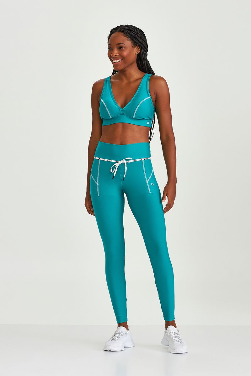 Top em tecido confortável com proteção solar e respirabilidade, com decote elegante, possui detalhe em amarração de cadarço personalizado nas costas e bojo removível.